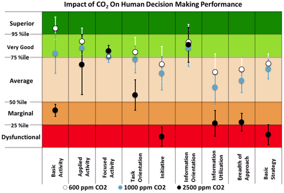 | Ambient carbon dioxide concentration and cognitive capacity. Image source: Satish et al.. |